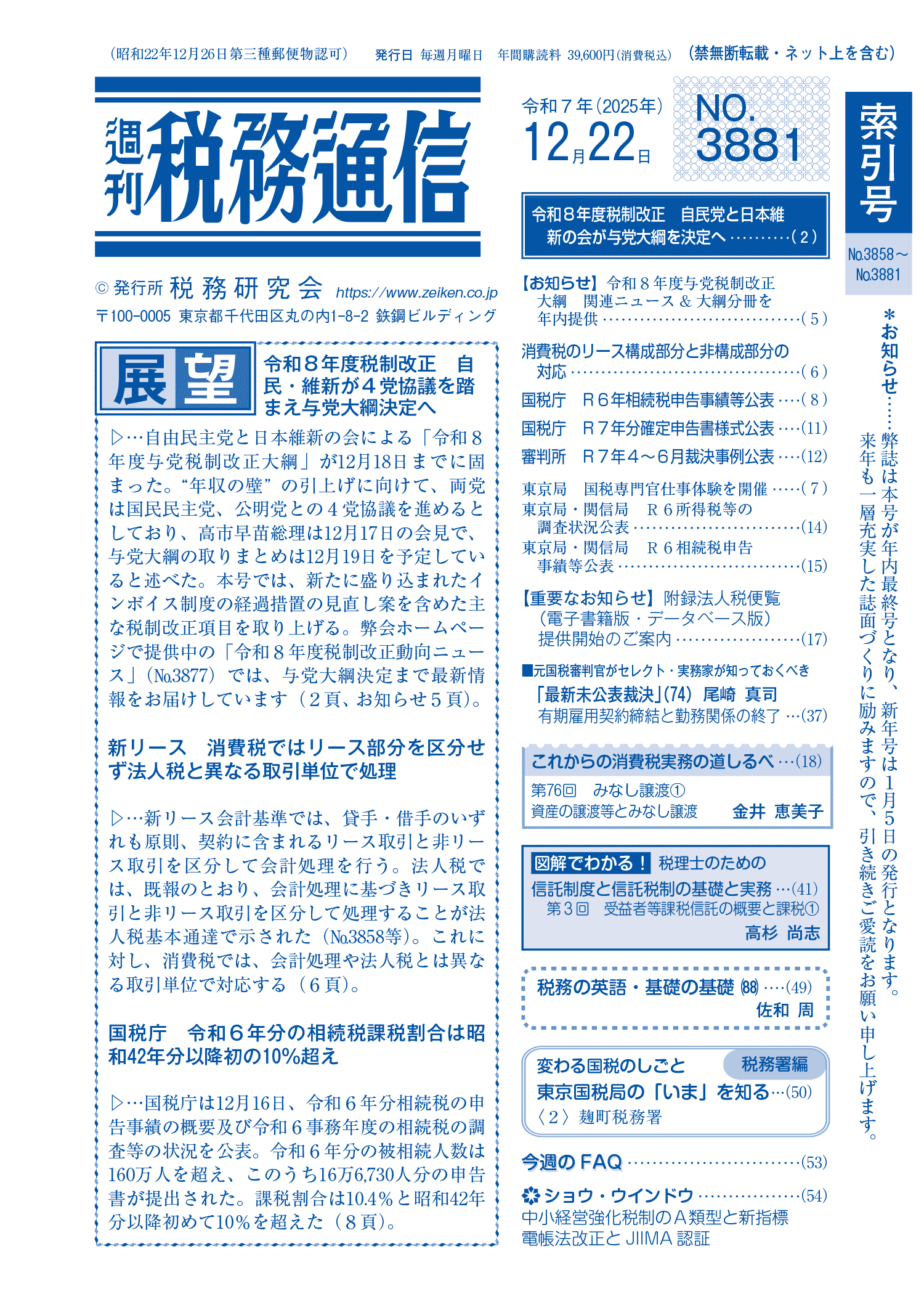 2025年12月22日 週刊税務通信(No.3881)
