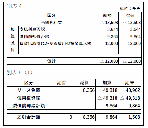 資産の賃貸借取引がリースに該当し、かつ、オペレーティング・リースに該当する場合、会計と税務の差異として以下の申告調整が必要になります。