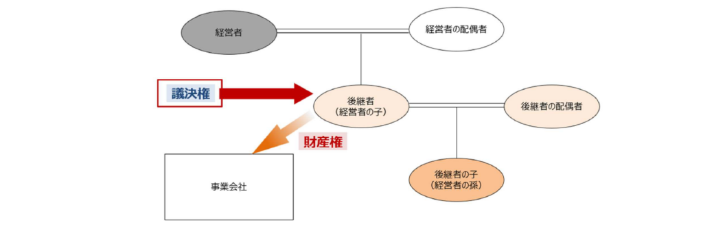 この「議決権分離自己信託」により、株式の持つ経済的価値(財産権)は後継者に与えつつ、株式の法律上の所有権(議決権)は受託者である経営者が保有し続けることができます。