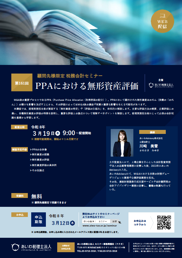 M&A後の重要プロセスであるPPA(PurchasePriceAllocation(取得原価の配分))。PPAにおいて識別された無形資産はのれん(狭義の「のれん」)の額にも影響を及ぼすことから、その評価によってはM&A後の損益や採算に重要な影響を与える可能性があります。